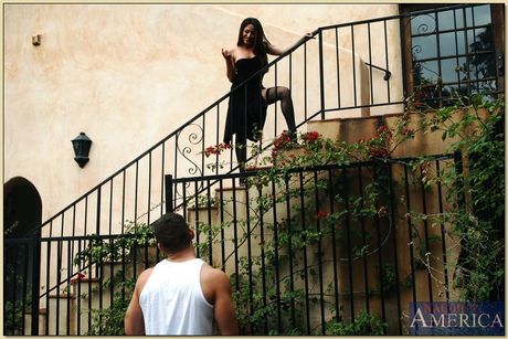 Naughty America: Brünette Milf Jenaveve Jolie bekommt ihre haarige Muschi leckt und von einem Gärtner geschraubt