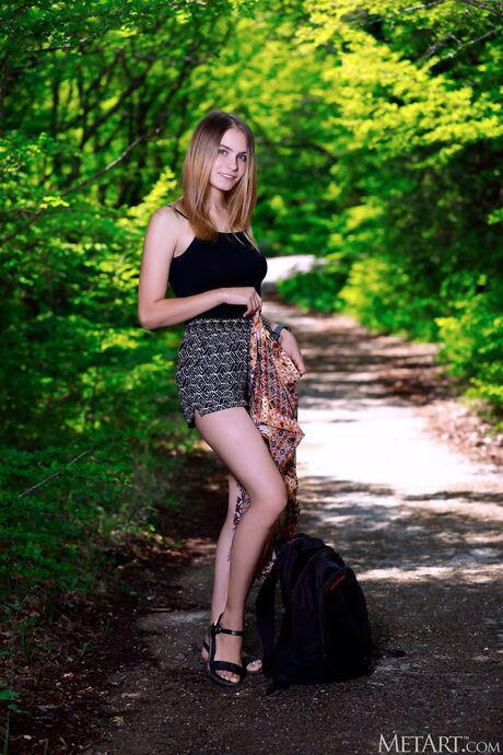 Met Art: Charmantes Teen Dakota Pink wird auf einer Landstraße sinnlich nackt