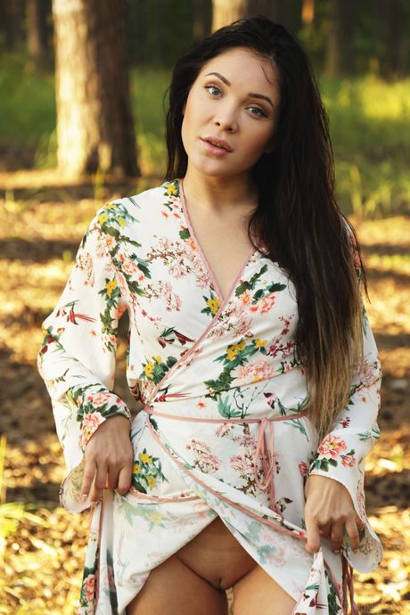 Viv Thomas: Niedliche schwarze Fuchsstreifen nackt und fingert ihre Muschi im Wald