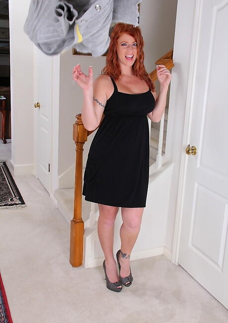 Karups Older Women: Die entzückende amerikanische rothaarige Milf Sara Orlando in heißen Unterwäsche zeigt große Tölpel und verbreitet ihre Beine