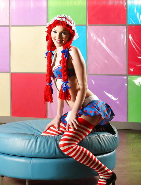 Wicked: Deluxe American Milf Jayme Langford im Rock, der ihren Arsch entblößt und ihre Beine verbreitet