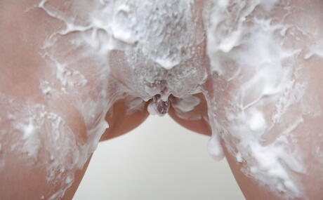 Wet And Pissy: Ausgezeichnete amerikanische blonde Milf Jillian Jacobs enthüllt winzige Titten und verbreitet ihre Beine in der Dusche