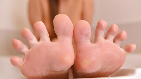 Hot Legs and Feet: Ausgezeichnete tschechische Cutie Mea Melone in Fußfetisch Show im Badezimmer