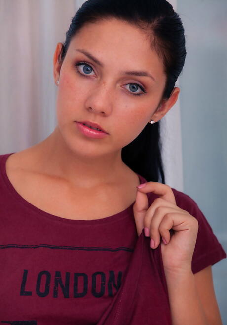 Met Art: Gracile brünette jugendliche Kantata enthüllt kleine Titten und rasierte Muschi