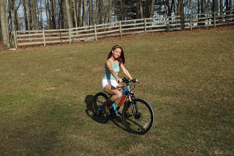 ALS Scan: Petite Redhead Paisley Rae masturbiert mit einem Dildo im Hinterhof