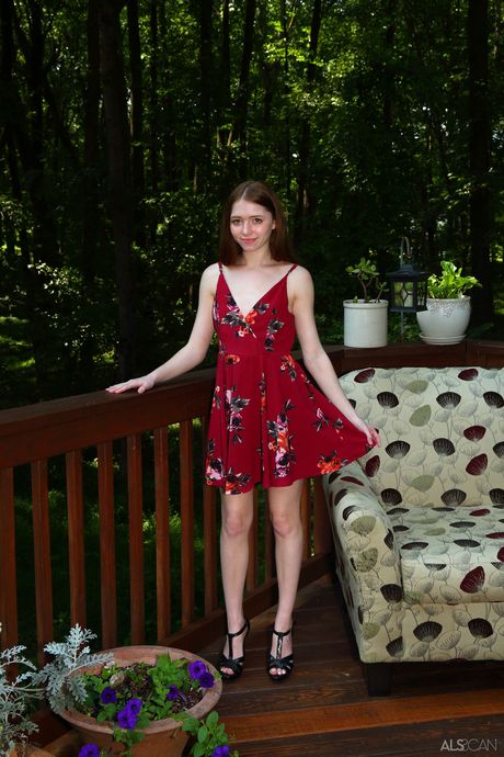 ALS Scan: Petite Teen Myra Glasford Streifen und Spielzeug ihre Muschi im Freien