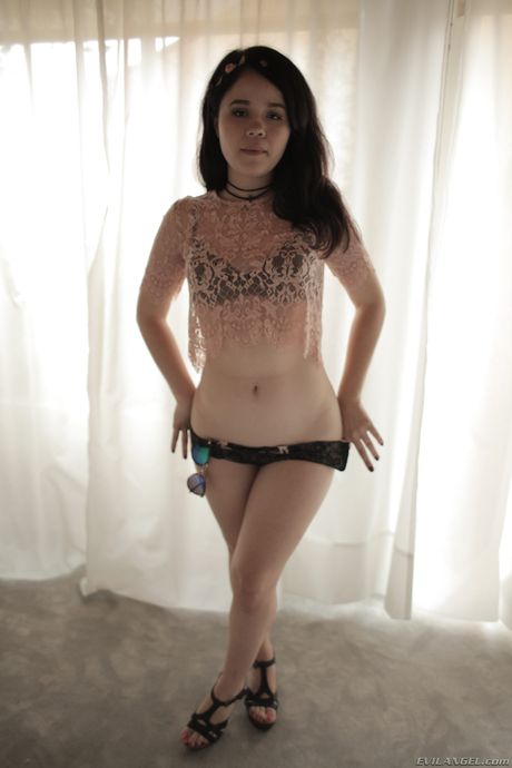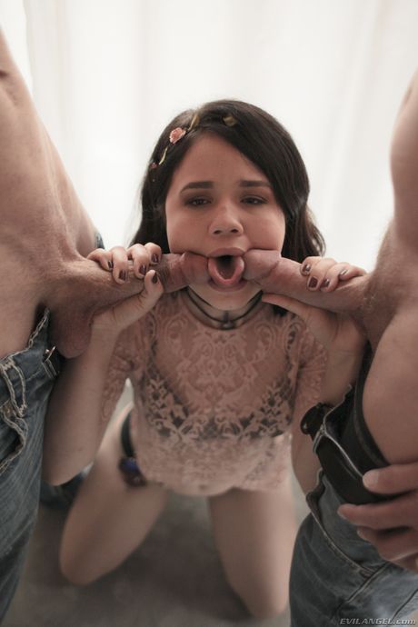 Evil Angel: Petite Teen Yhivi wird doppelt von zwei hängenden Männern in einem Dreier gefickt