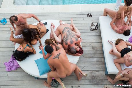 Private: Sexy Babes mit großen Titten und Ärschen werden in einer wilden Outdoor -Orgie Gangbang.