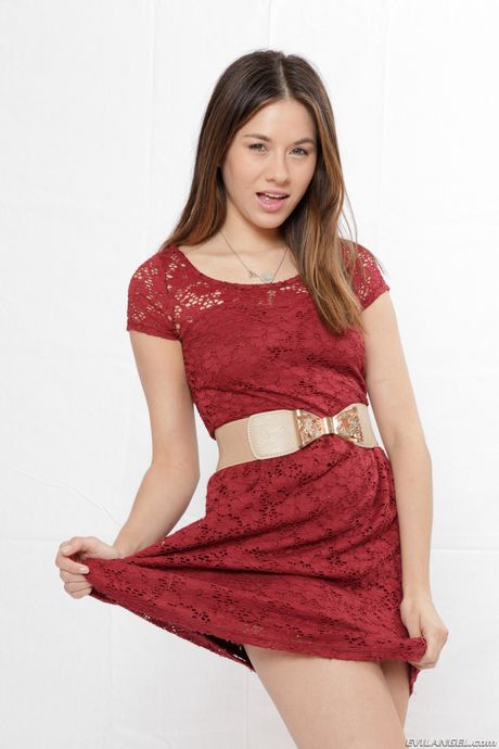 Evil Angel: Sexy Brünette Shyla Jennings deckt ihre schönen Titten und haarige Muschi auf