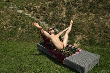ALS Scan: Slender Teen Alecia Fox entfernt ihren Bikini und Öle ihren Körper im Freien