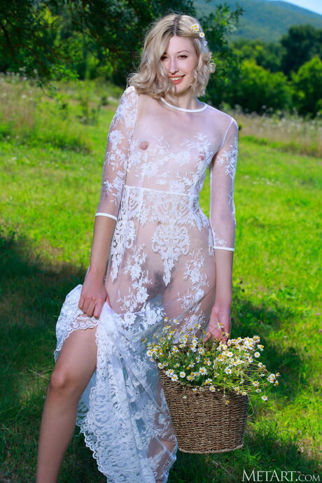 Met Art: Slender Teen Amalia Nymph Streifen und posiert nackt in einer Wiese
