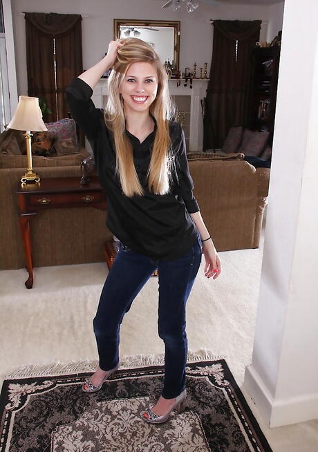 Karups Hometown Amateurs: Slim American jugendlicher Kassie Kensington in engen Jeans zeigt kleine Titten und verbreitete ihre Beine
