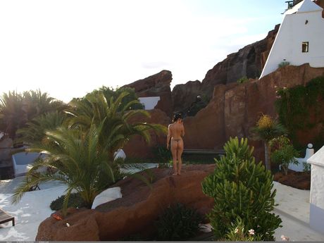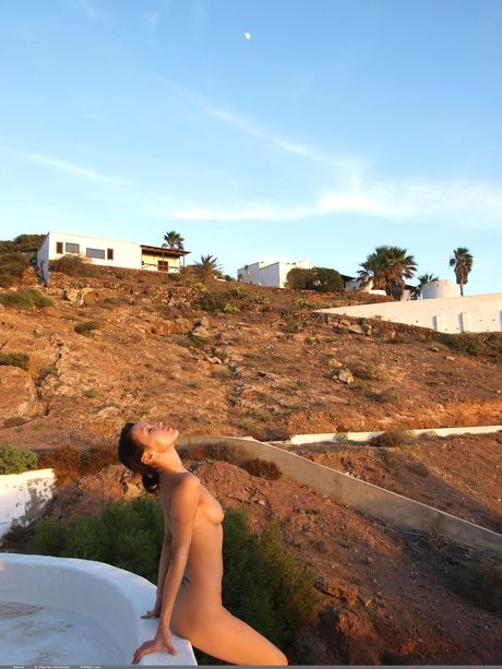 Domai: Solo -Mädchen mit kurzen Haaren Agnes Models im Nackt auf einem felsigen Strand