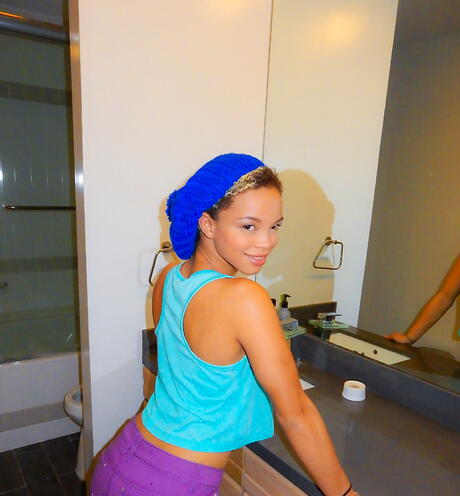 Black GFs: Hervorragender schwarzer Amateur Ashley Luvbug in ausgefallenen Shorts, die ihren Hintern und rasierte Muschi entblättern