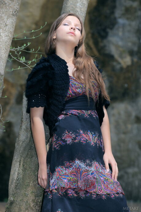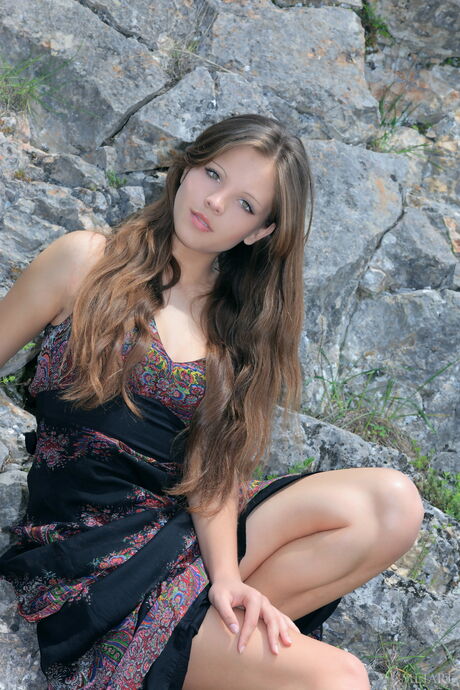 Met Art: Sweet Teen Ariana A entfernt ihr Kleid und posiert nackt auf einem felsigen Flussufer