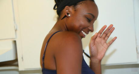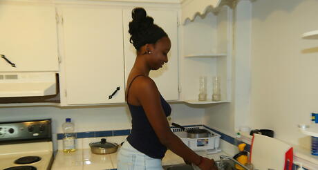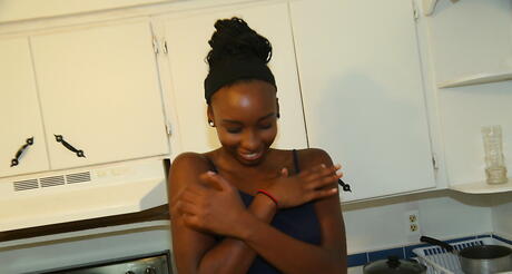 Black GFs: Verlockende schwarze Milf Naomi -Glücksspiel im Rock zählt große Brüste und heißer Hintern