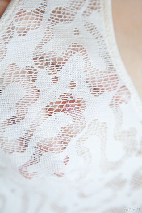 Met Art: Thin Teen Mia Sollis präsentiert ihre großen Titten und posiert nackt in der Küche