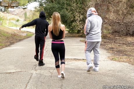 Dogfart Network: Tiny Teen Leah Lee lässt ihre Muschi von zwei schwarzen Jungs durchdringen