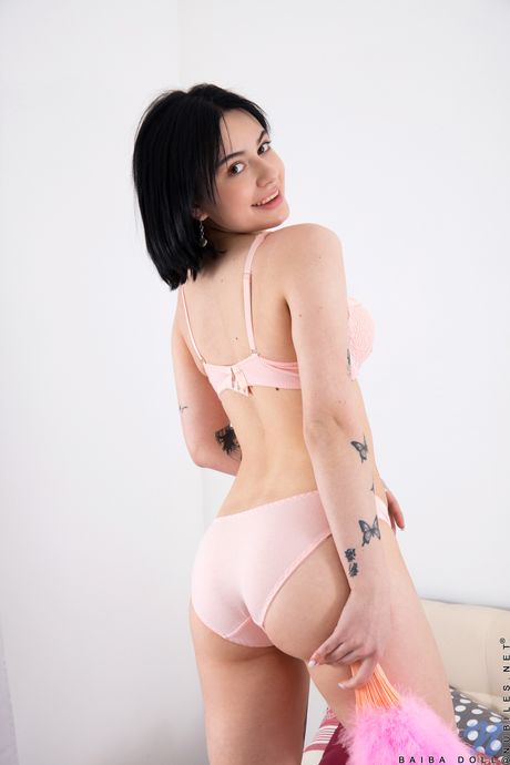 Nubiles: Top Babe Baiba Doll nimmt ihren BH und ihren Höschen aus, um nackt zu posieren