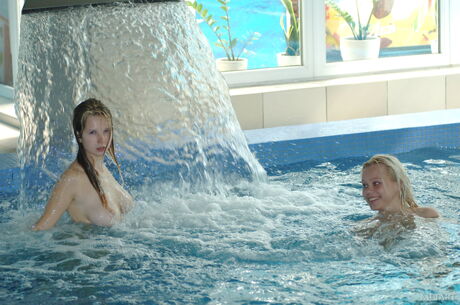 Met Art: Die ukrainische Süße Irena B und ihre Freundin stellen nackt in einem Schwimmbad.