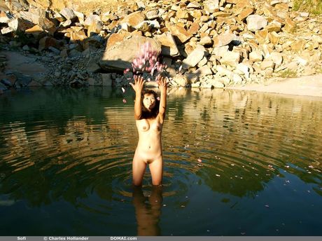 Domai: Winsome Teen Sofi zeigt ihre kleinen Titten und zeigt Nacktheit in einem Solo
