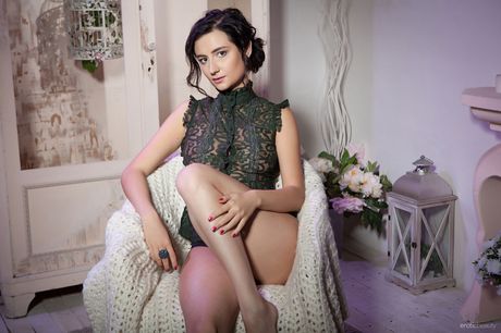 Erotic Beauty: Adorable adolescente Madeline B se lo quita todo en una silla con confianza