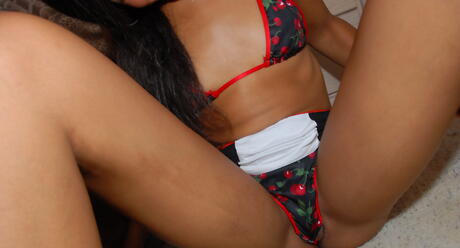Black GFs: Atractiva hottie negra Aliza Monroe en bikini le otorga el culo y se extiende las piernas