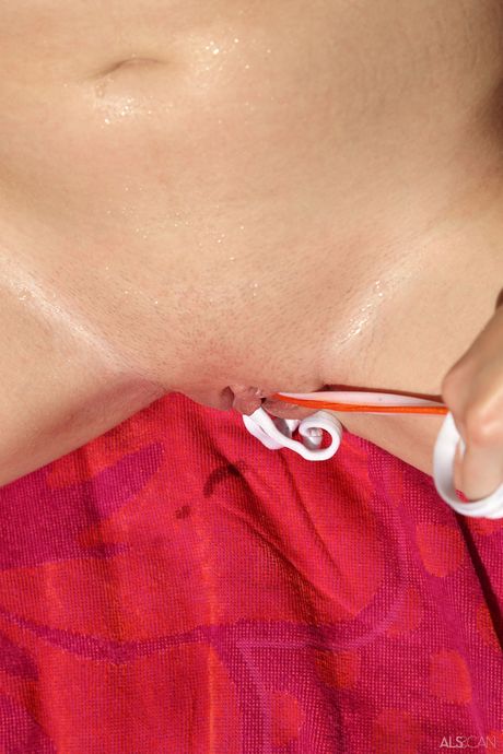 ALS Scan: La amateur rubia Odette Delacroix se desnuda en un patio antes de fisting su coño