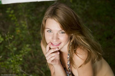 Errotica Archives: Rubia adolescente Malinda A tiras desnudas en el bosque y posa en el desnudo