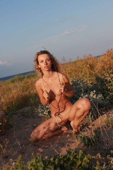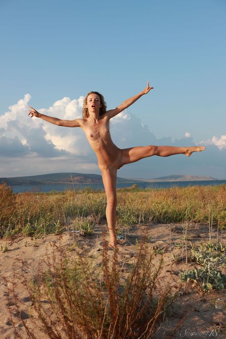 Stunning 18: Rubia adolescente Nicole V ataca grandes poses de desnudos en una playa de arena