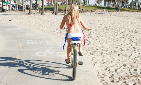 Karups Older Women: La curiosa rubia americana, Stevie Lix, exhibe su trasero en la playa
