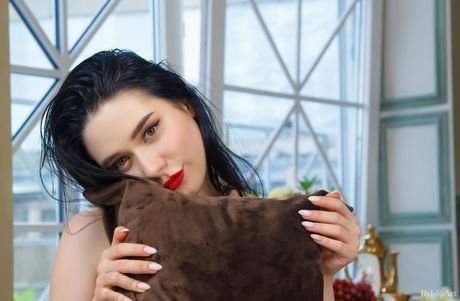 Rylsky Art: La entrañable adolescente de Gauset se destaca su culo apretado mientras está desnudo en una cama
