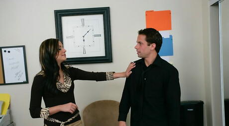 Big Tits At Work: Fascinante milf estadounidense Brandy Talore perforado en su coño calvo después de una buena succión en la oficina