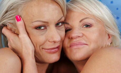 Karups Older Women: Lesbianas de edad caliente Iris y Vanessa Moore en falda lamiendo coños rosados en el sexo lesbiano caliente