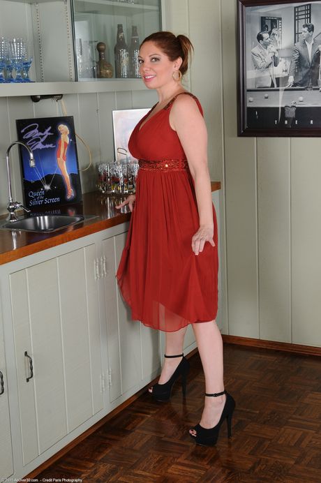 All Over 30: Lady Kiki Daire madura muestra su coño después de desnudarse en la cocina