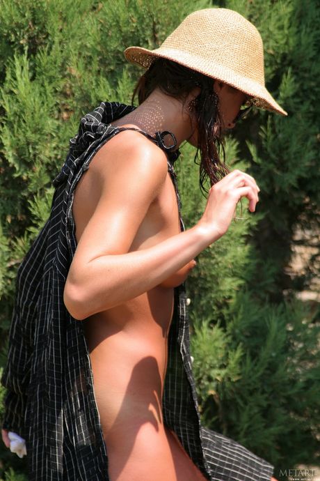 Met Art: Adolescente perfecta Sharon E muestra su cuerpo y poses de tostado con un sombrero y gafas de sol