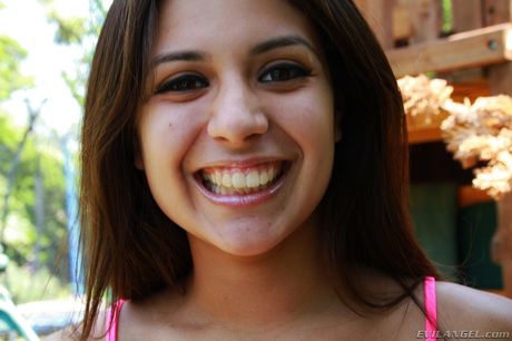 Evil Angel: Petite Latina Jynx Maze resalta sus grandes tetas y su culo junto a la piscina