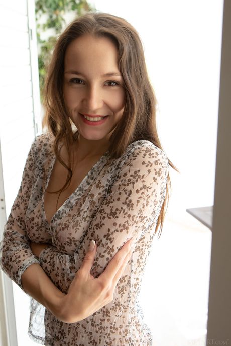 Met Art: Pretty Teen Megan Muse retira su vestido para posar desnudo provocativamente