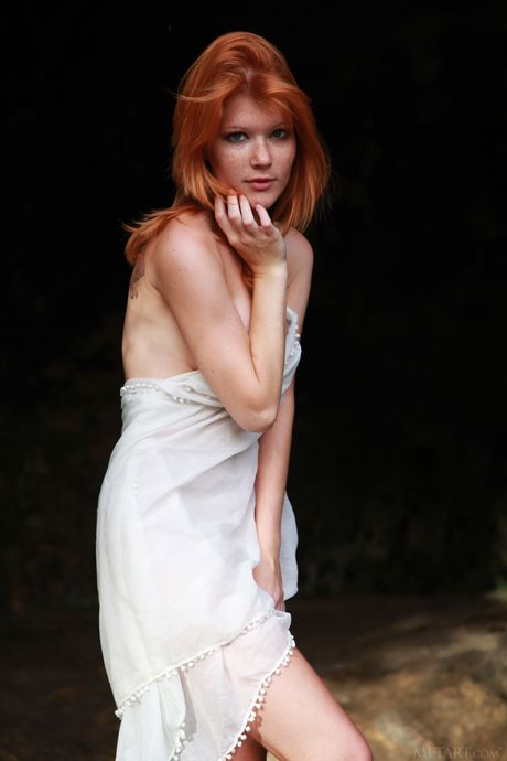 Sex Art: Adolescente pelirroja Mia Sollis tira y se masturba su coño al aire libre