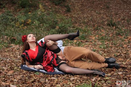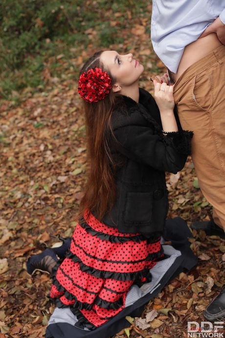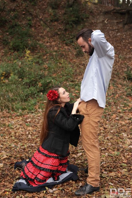 Porn World: Sexy Russian Stacy Snake da una mamada en el bosque y se corre una corrida