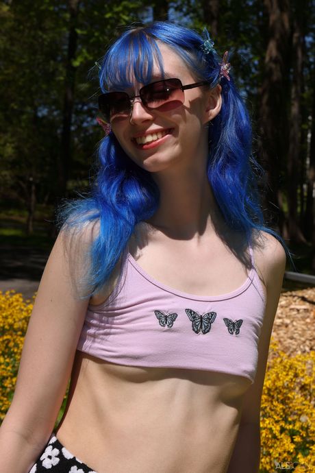 ALS Scan: Nena amateur delgada con tetas pequeñas desnudando y meando al aire libre