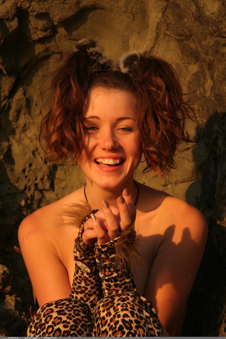 Domai: Slender Teen Firebird A exhibe sus pequeñas tetas y poses desnudas en coletas
