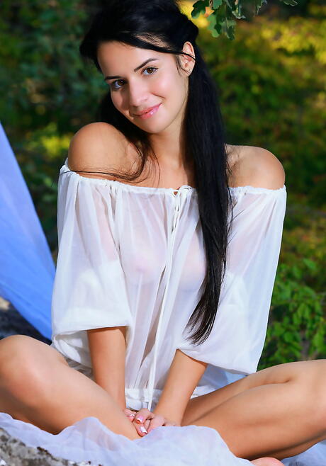 Met Art: La adolescente de cabello oscuro delgado ucraniano, Lola Marron, le otorga el trasero y extiende las piernas al aire libre