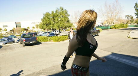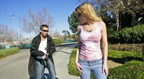 Big Butts Like It Big: Impresionante American Trina Michaels en pantalones cortos chupa polla y folla en el culo afuera