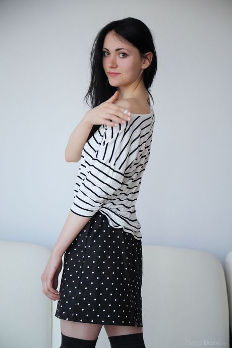 Eternal Desire: La delgada adolescente Eilona se desnuda en medias blancas y tacones