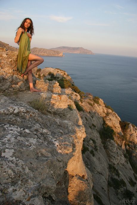 Met Art: Nena ucraniana Vika Q exhibe sus grandes tetas y poses desnudas en la naturaleza