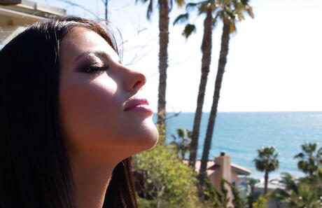 Butt Man: Adorables cheveux noirs américains Adriana tchchik en culotte sexy dénude les gros seins et aime le gode en plein air