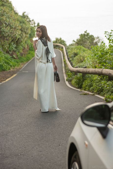 Met Art: L'adolescente séduisante Mina se fait nue sur un bord de la route après que sa voiture se soit effondrée
