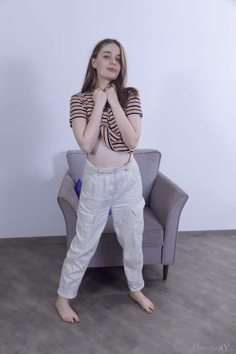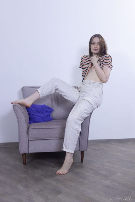 Stunning 18: Une fille à peine légale Eshlinn Brook se déshabille sur un lit seule