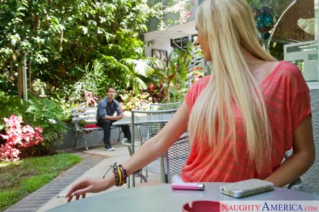 Naughty America: Le pornstar blonde Victoria White se fait taquiner et bite par un goujon